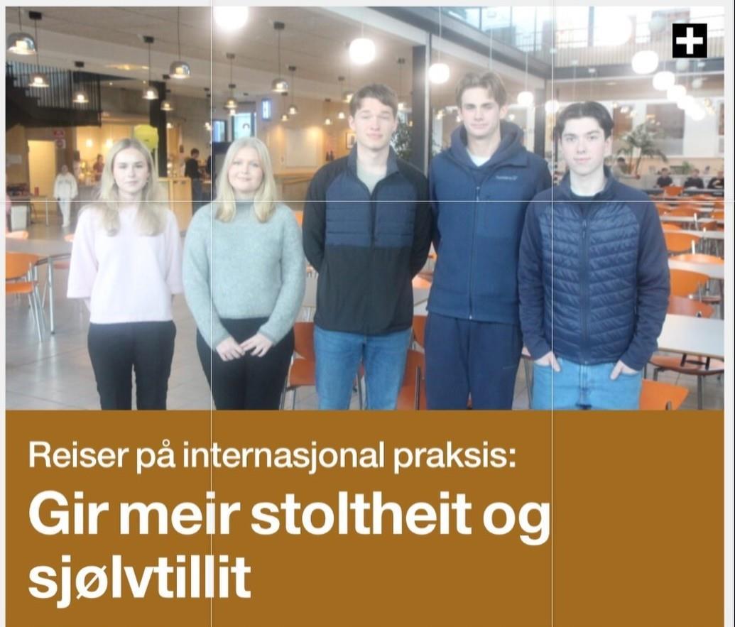 Via Erasmus+ og internasjonalisering får elevene en unik mulighet til ikke bare faglig erfaring, men også en opplevelse for livet. Gjennom oppholdet får elevene verdifulle kulturopplevelser som utvider perspektivet og gir innsikt i andre samfunn og tradisjoner. Utveksling kan bidra til økt selvstendighet, da man lærer å tilpasse seg nye situasjoner og ta ansvar i en fremmed kultur. Dette skoleåret har vi elever på arbeidspraksis i Nederland, Danmark, Finland og Tyskland
